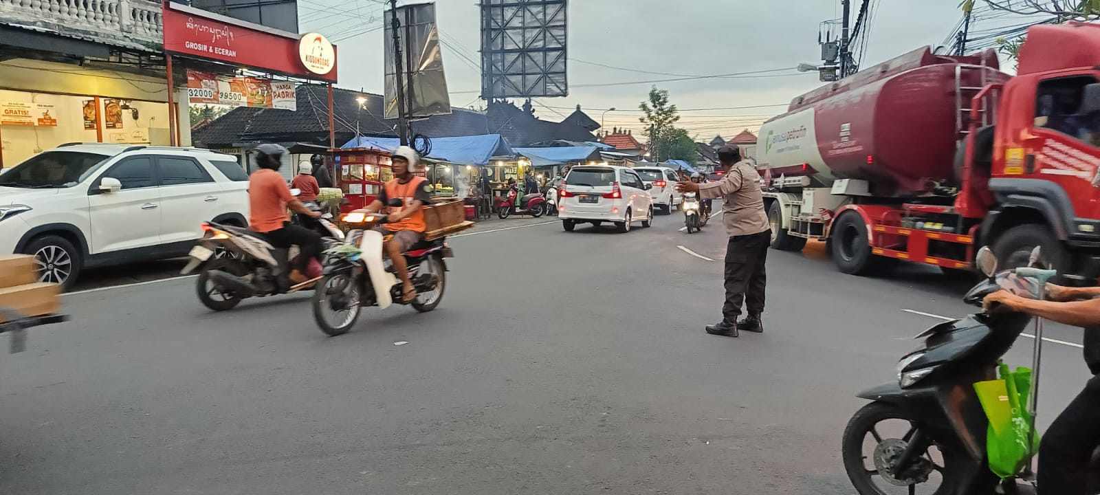Selain pengaturan lalu lintas, personel Polsek Abiansemal juga memberikan imbauan kepada para pengendara agar selalu tertib berlalu lintas, menggunakan helm, dan tidak melawan arus.