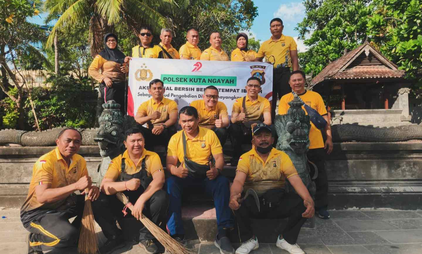 Bali – deteksipost.com – Dalam rangka menyambut Hari Bhayangkara ke-79 yang jatuh pada 1 Juli 2025, Polsek Kuta mengusung tema kegiatan sosial bertajuk “Polsek Kuta Ngayah “. Kegiatan ini diwujudkan melalui aksi bersih-bersih tempat ibadah yang dipimpin langsung oleh Kapolsek Kuta, AKP Agus Riwayanto Diputra, S.I.K., M.H., didampingi Wakapolsek dan seluruh personel Polsek Kuta. Kegiatan ini menjadi bentuk nyata komitmen Polri dalam membangun kedekatan dengan masyarakat lintas agama serta menjaga keharmonisan dan kebersihan lingkungan sekitar (Minggu 15/06/2025).