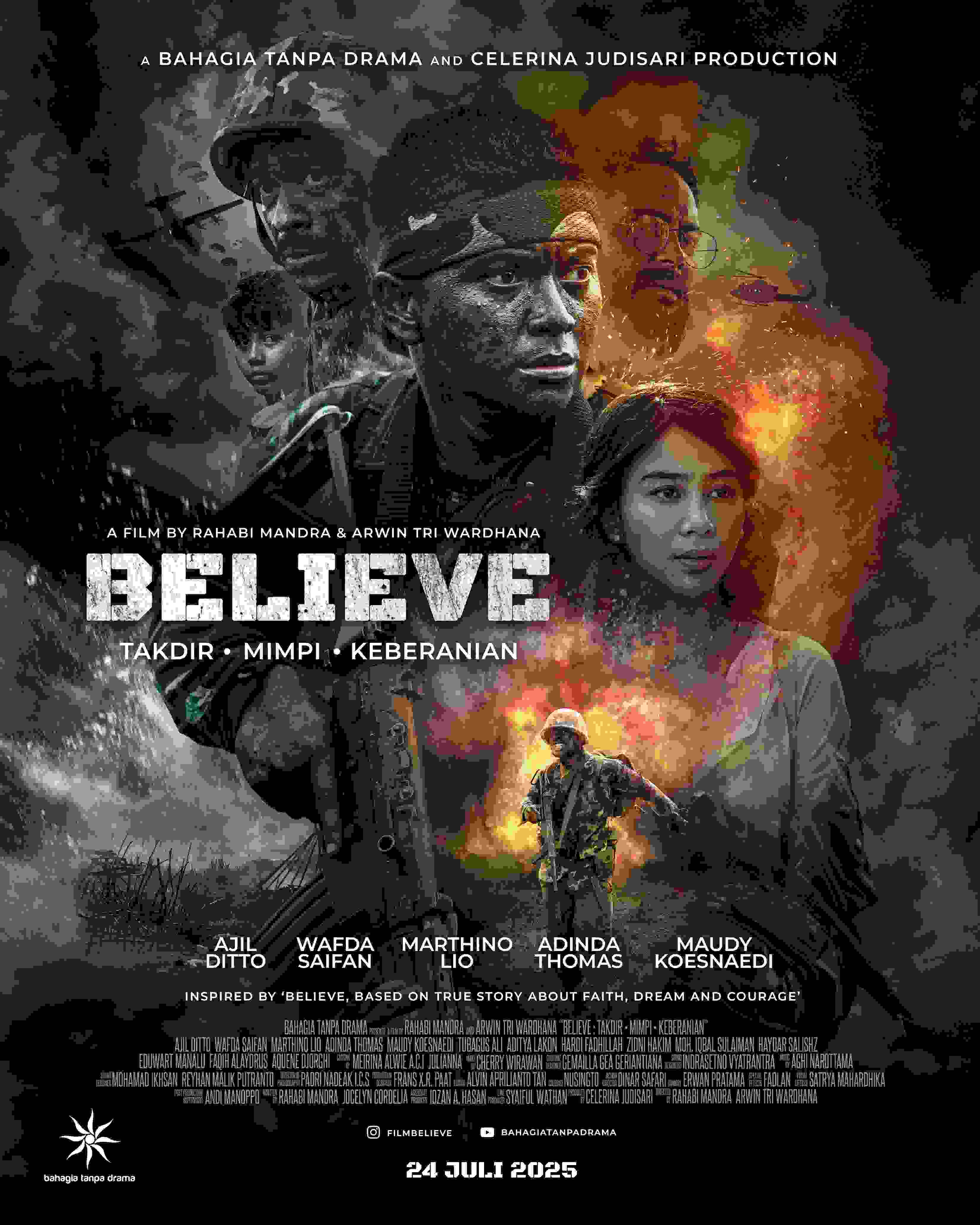 Film ini bukan sekadar sajian militer biasa. Disutradarai oleh Rahabi Mandra dan Arwin Tri Wardhana, Believe menggali sisi lain dari kehidupan seorang prajurit melalui kisah nyata yang diangkat dari biografi Believe: Faith, Dream, and Courage. Cerita berpusat pada Agus, pemuda yang tumbuh tanpa kehadiran sang ayah, Dedy Unadi seorang tentara aktif yang lebih sering berada di garis depan pertempuran ketimbang di rumah.
