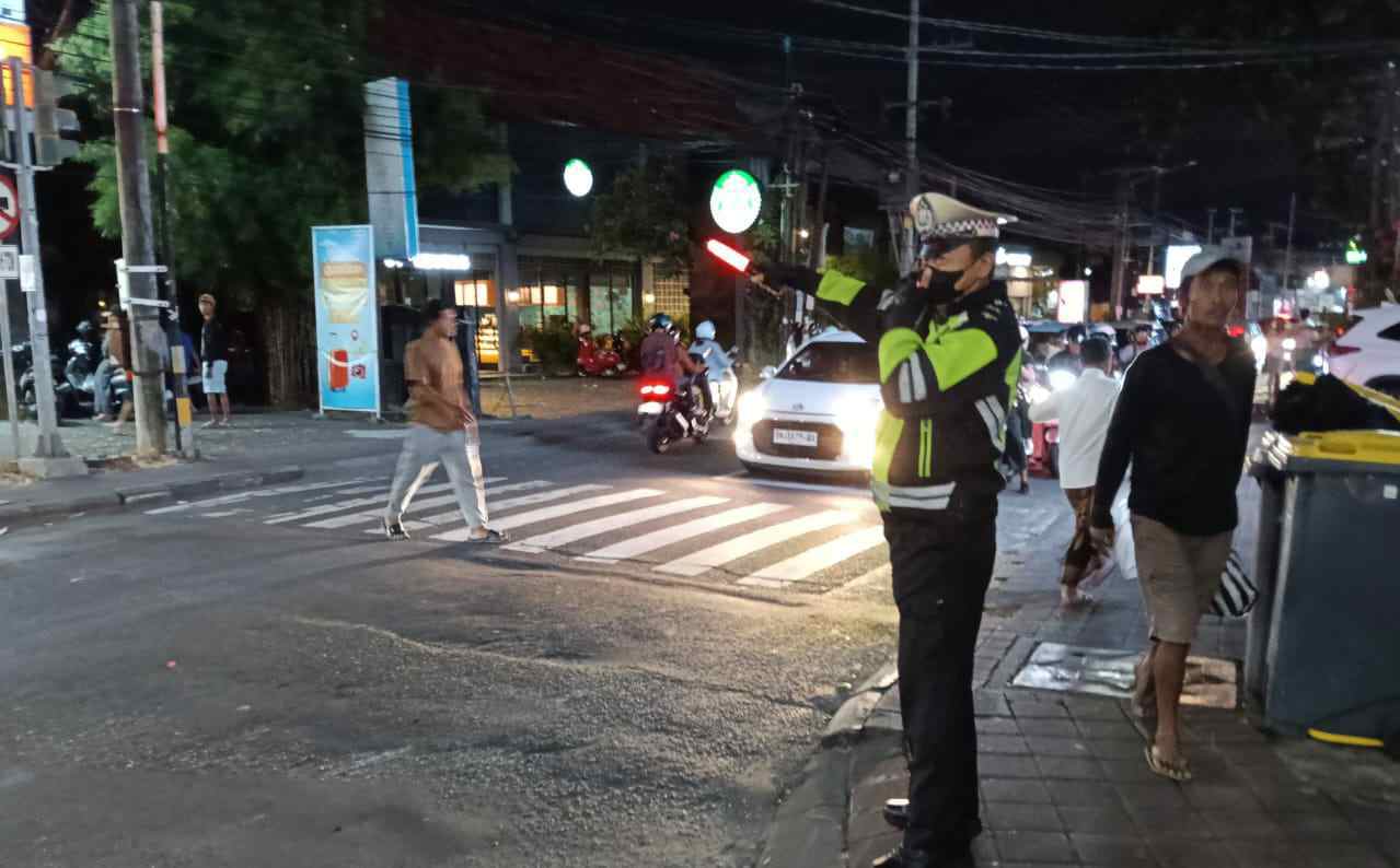 Pastikan Kelancaran Arus Lalin Personel Polsek Kuta Utara Pengaturan Malam Hari