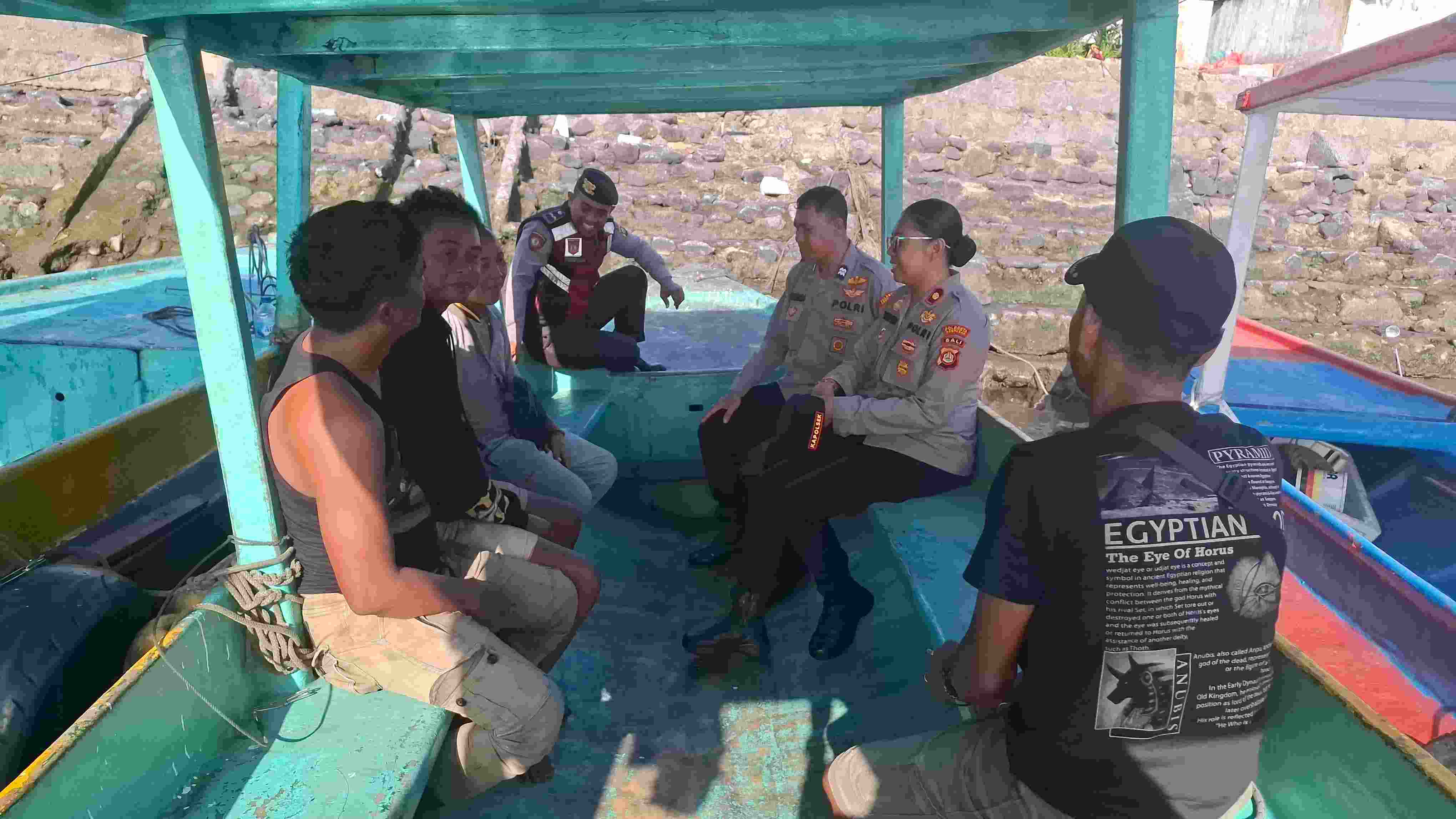 Dalam dialogis dengan para pekerja jasa transportasi sampan, Kapolsek Kompol Prabawati memberikan himbauan agar mereka tetap ikut serta mengingatkan para ABK untuk ikut serta menjaga Kamtibmas dengan menjauhi minum minuman keras yang selam ini menjadi pemicu terjadinya gangguan kamtibmas di kawasan pelabuhan Benoa.