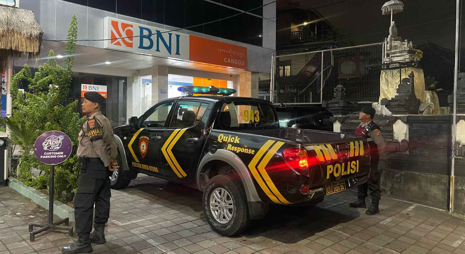Patroli tersebut, menyasar tempat tempat strategis dengan sasaran meliputi Obyek vital seperti ATM BNI, BRI, SPBU, Pertokoan di jalan raya Canggu.