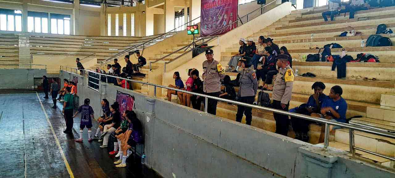 Bali – deteksipost.com – Klungkung – Personel Polsek Klungkung yang dipimpin oleh Panit Binmas IPTU Ni Putu Suardani melaksanakan pengamanan kegiatan semi final Liga Futsal Pelajar Gianyar Tahun 2025 yang digelar di GOR Swecapura, Gelgel, Kecamatan Klungkung, (19/7).