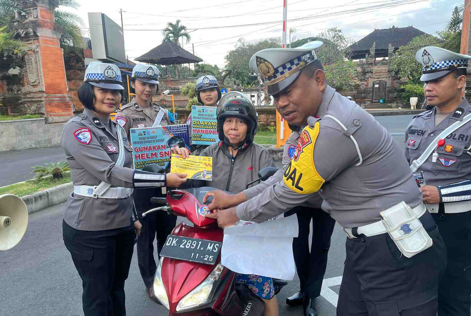 Bali – deteksipost.com – Klungkung – Dalam rangka Operasi Patuh Agung 2025, personel yang terlibat dalam operasi tersebut melaksanakan kegiatan sosialisasi tertib berlalu lintas dengan menyasar kawasan publik, salah satunya di depan Pasar Seni Klungkung.