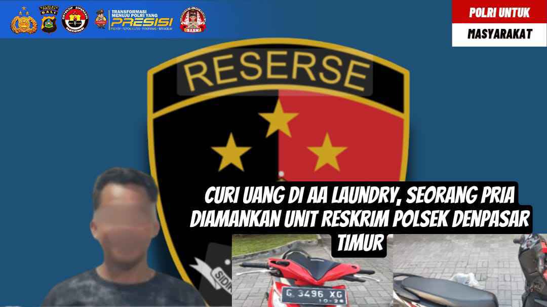 Bali – deteksipost.com – Aksi pencurian uang jasa laundry yang terjadi di sebuah usaha laundry di kawasan Jln. Trengguli I, Penatih, Denpasar Timur, berhasil diungkap Unit Reskrim Polsek Denpasar Timur (Dentim). Seorang pria berinisial S (25th), asal Brebes, Jawa Tengah diamankan setelah terekam kamera pengawas saat mengambil uang dari dalam laci kasir di toko tersebut.