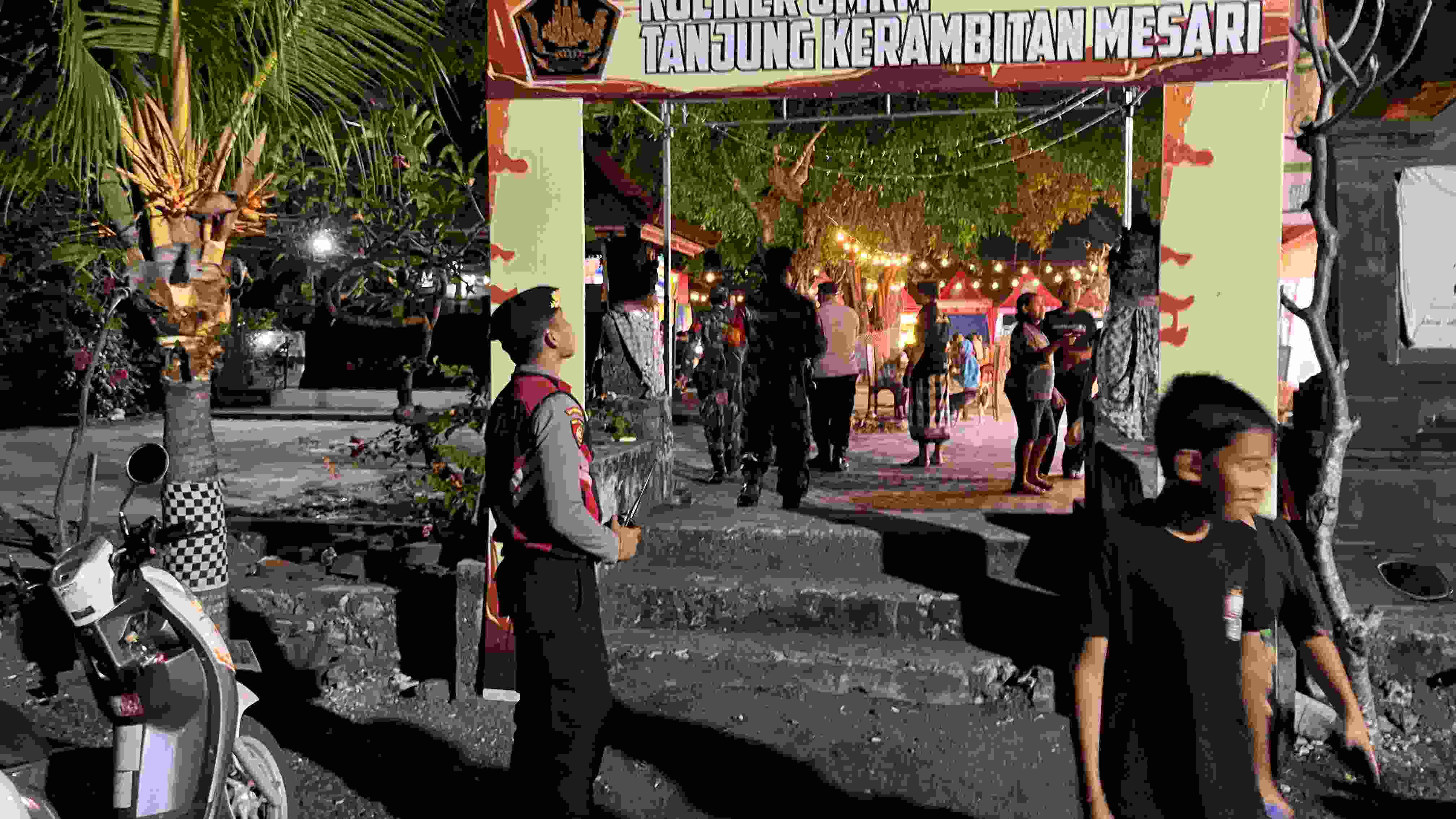 Bali – deteksipost.com – Polres Klungkung – Bhabinkamtibmas Desa Batununggul Aiptu Dewa Made Susila Dharma bersama personel Polsubsektor Pelabuhan Sampalan dan pecalang melaksanakan kegiatan pengamanan di lokasi kegiatan Kuliner UMKM Tanjung Kerambitan Mesari yang berlangsung di Desa Batununggul, Kecamatan Nusa Penida, Klungkung, (31/7).