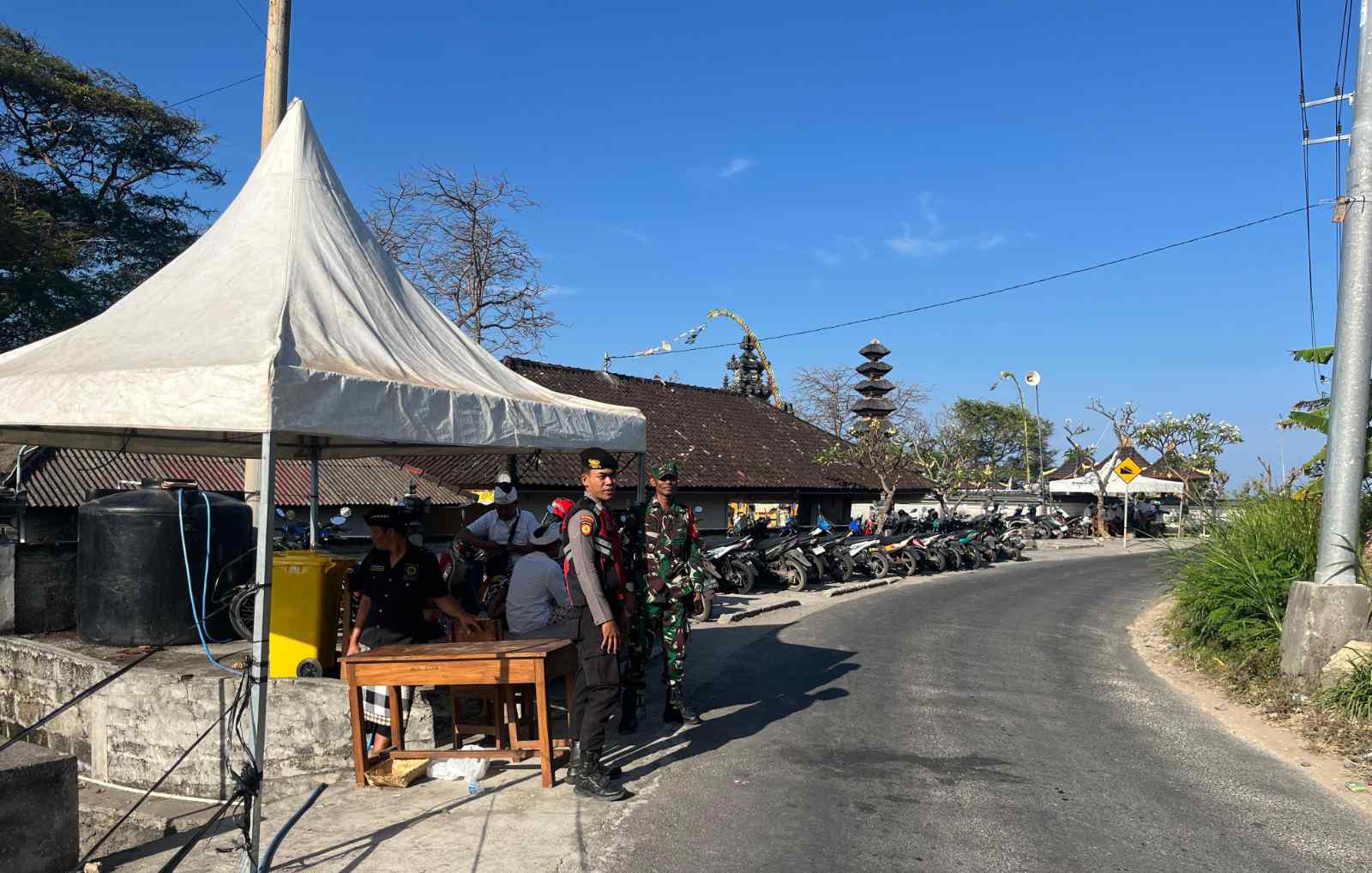 Bali – deteksipost.com – Nusa Penida – Personel Polsubsektor Kawasan Pelabuhan Sampalan bersama TNI dan Pecalang melaksanakan pengamanan serta pengaturan lalu lintas di Pura Puseh Batumulapan, Desa Batununggul, Nusa Penida, Klungkung, (20/8).