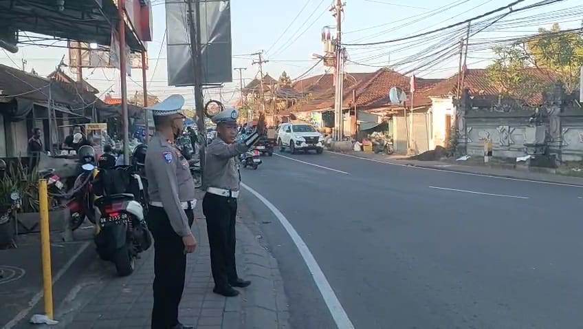 Selain mengatur arus lalu lintas, petugas juga memberikan imbauan kepada pengendara agar selalu mematuhi aturan berlalu lintas, menggunakan helm, serta mengutamakan keselamatan.