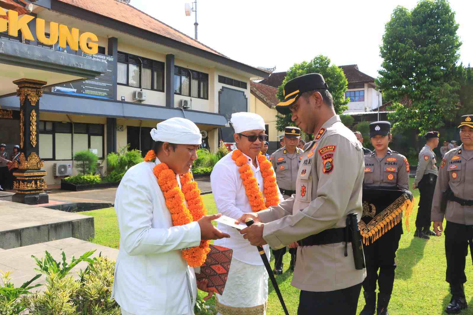 Adapun personel yang menerima penghargaan purna bakti yaitu Aiptu I Komang Sudarsana, Bamin 4 Sium Polres Klungkung serta Aipda I Wayan Gede Puja Astawa, Bamin 1 Sium Polres Klungkung