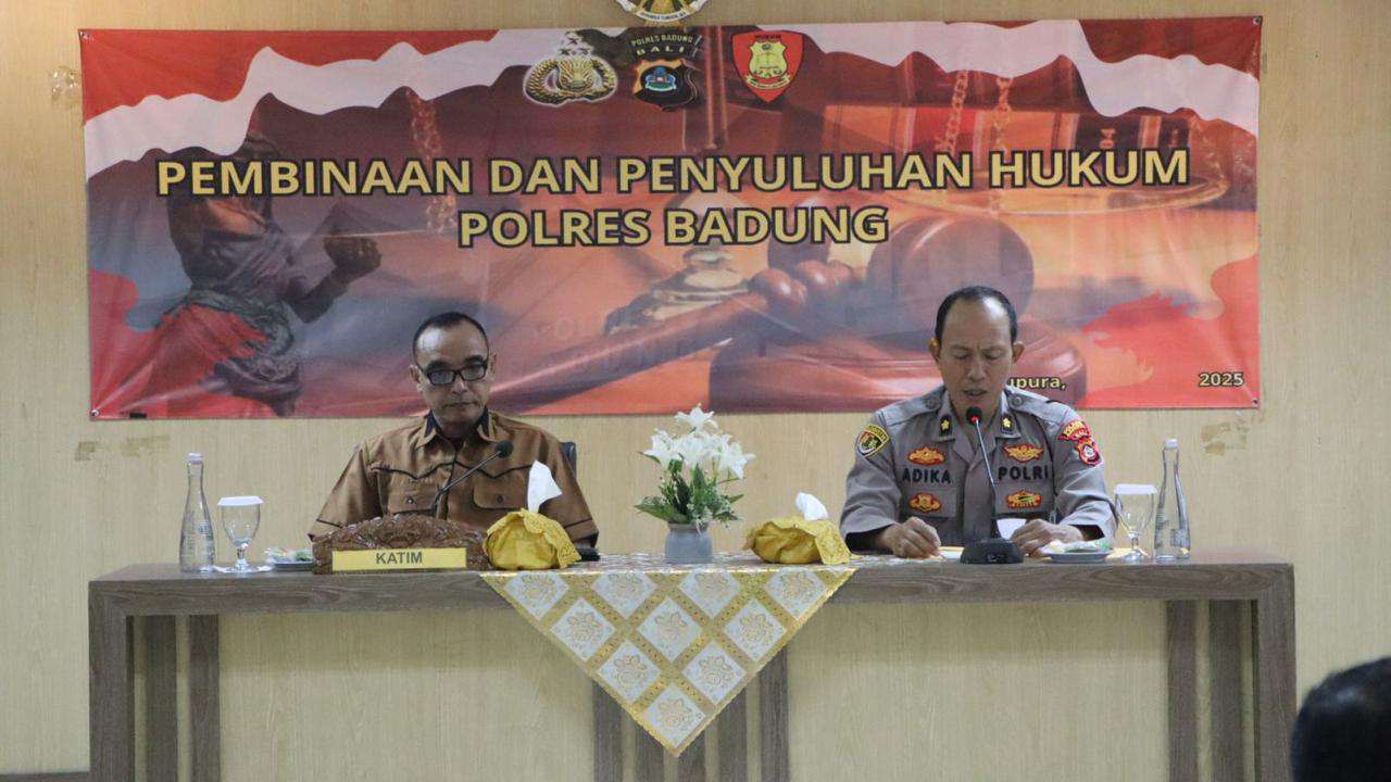 Bali – deteksipost.com – Mangupura – Dalam rangka meningkatkan profesionalisme dan pemahaman hukum bagi personel kepolisian, Tim Bidang Hukum (Bidkum) Polda Bali menggelar kegiatan pembinaan dan penyuluhan hukum di Aula Polres Badung, Kamis (6/11). Kegiatan yang dihadiri oleh puluhan personel Polres dan Polsek jajaran ini membahas materi utama terkait Peraturan Kapolri Nomor 1 Tahun 2025 tentang Pembentukan Peraturan di Lingkungan Polri, sebagai pedoman dalam pelaksanaan tugas yang sesuai ketentuan hukum.