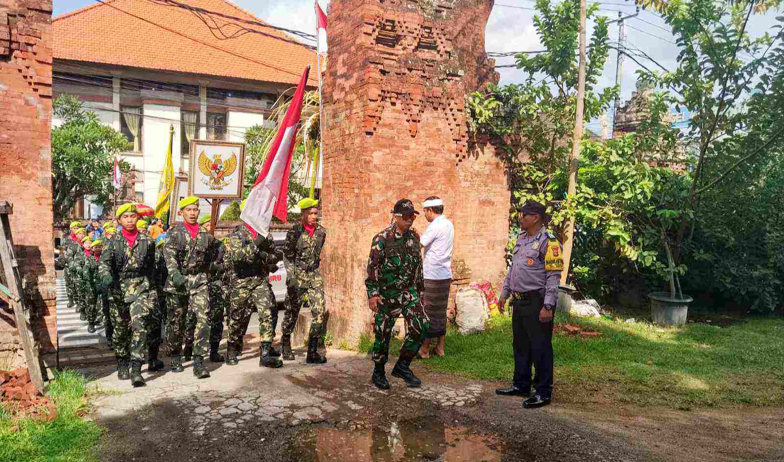 Bali – deteksipost.com – Dalam rangka memperingati Hari Puputan Margarana ke -79, Puri Agung Kesiman menjadi titik prosesi pelepasan Pataka Panji-Panji dan Surat Sakti Pahlawan Nasional I Gusti Ngurah Rai, Senin (17/11/2025). Kegiatan bernuansa perjuangan dengan tema “Mengabdi Tanpa Batas, Berjuang Sepanjang Masa Tetap Tegaknya NKRI” ini mendapat pengamanan langsung dari Bhabinkamtibmas Kelurahan Kesiman, Bripka Wayan Artawa bersama Babinsa Koptu I Wayan Suandika.