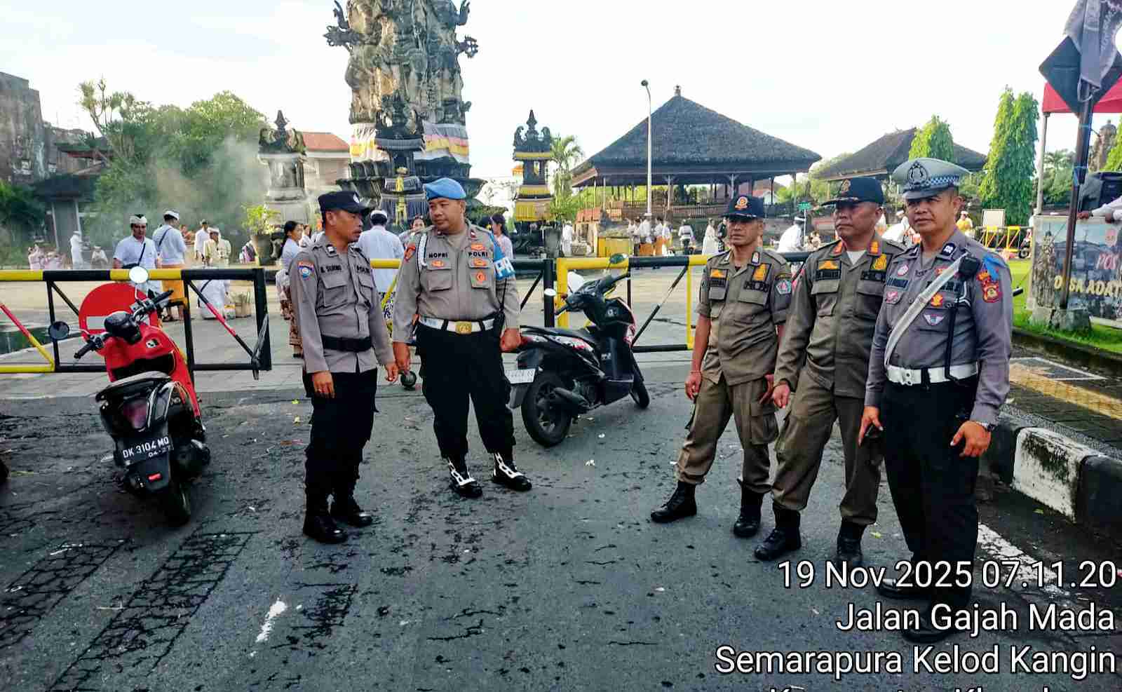 Bali – deteksipost.com – Polres Klungkung – Dalam rangka menyambut Hari Raya Galungan, Personel Polsek Klungkung melaksanakan pengamanan di sejumlah lokasi ibadah dan pusat aktivitas masyarakat, seperti Pura Jagatnatha dan Catus Pata Klungkung, (19/11).
