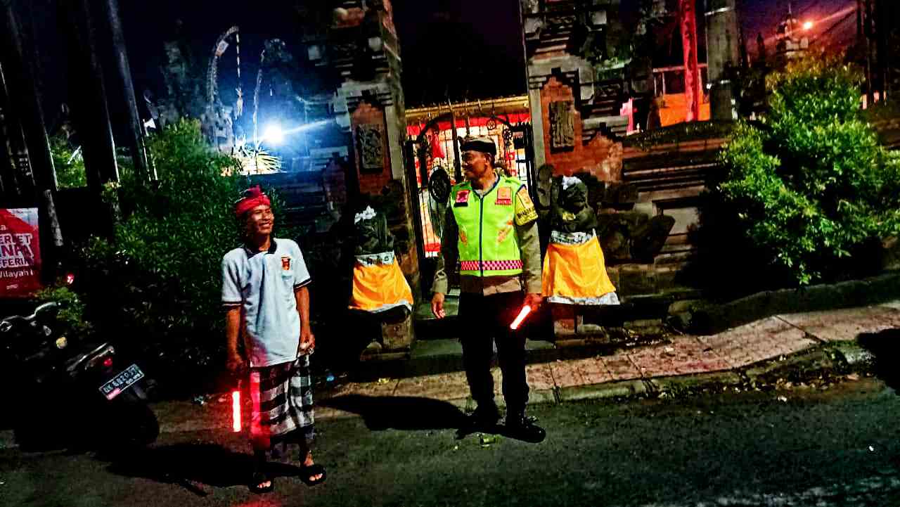 Bali – deteksipost.com – Polres Klungkung – Bhabinkamtibmas Desa Takmung Polsek Banjarangkan Aiptu I Nengah Kariasa melaksanakan pengamanan rangkaian Upacara Piodalan di Pura Bale Agung Desa Adat Takmung, yang berlangsung di Dusun Takmung Kangin, Desa Takmung, Banjarangkan, Klungkung, (24/11).