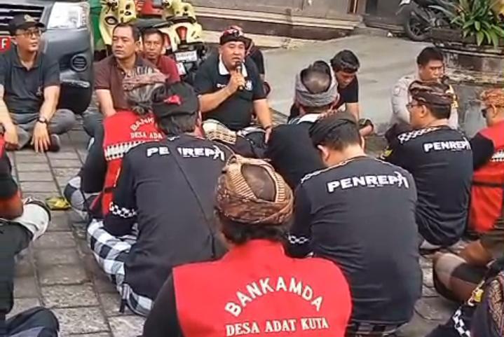 Keterangan foto; Jro Bendesa Adat Kuta I Komang Alit Ardana, S.E, Bersama Pecalang.