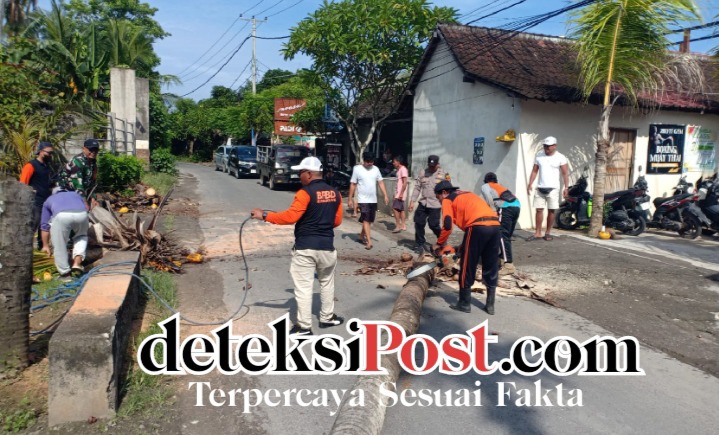 BALI – DETEKSIPOST.COM – Polres Klungkung – Bhabinkamtibmas Desa Ped Polsek Nusa Penida Polres Klungkung Aipda I Kadek Suarmada bersinergi dengan Babinsa Desa Ped melaksanakan atensi kegiatan penebangan pohon kelapa yang dilakukan oleh anggota BPBD Kecamatan Nusa Penida di ruas Jalan Ped–Kutampi, tepatnya di wilayah Banjar Sental Kawan, Dusun Sental, Desa Ped, Kecamatan Nusa Penida, Kabupaten Klungkung, (29/1).