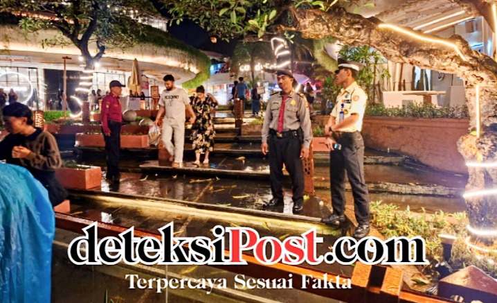 Patroli Jalan Kaki di Mall, Polisi Pastikan Keamanan Wisatawan Meski Diguyur Hujan