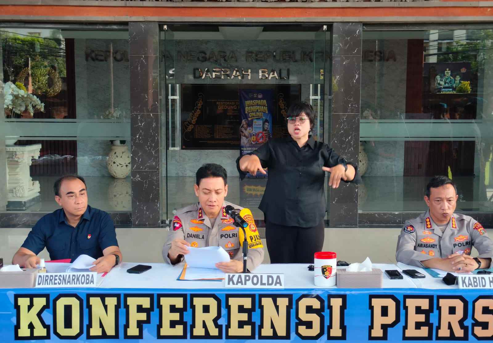 BALI – DETEKSIPOST.COM – Kapolda Bali Irjen Pol Daniel Adityajaya S.H., S.I.K., M.Si., saat konfrensi pers di loby Mapolda Bali didampingi, Diresnarkoba Kombes Pol Radiant S.I.K., M.Hum., Kabid Humas Kombes Pol Ariasandy S.I.K., dan Kabid Propam Kombes Pol Ketut Agus Kusmayadi S.I.K., S.H., M.H., serta perwakilan dari Beacukai Bali Sunaryo, sabtu 7/2/2026.