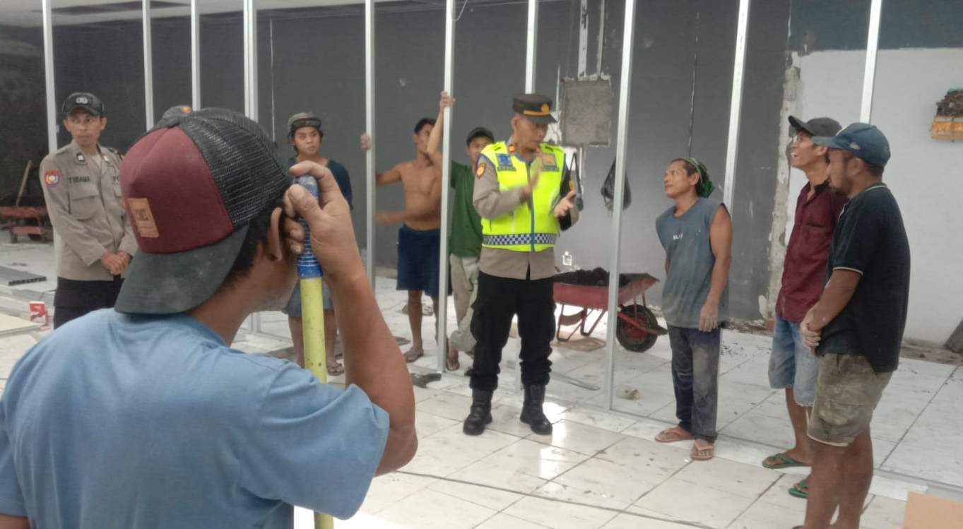 IPTU KM Alit Sapta W., S.H., komandan patroli, tak hanya memberikan imbauan Kamtibmas, tapi juga menyemangati para buruh proyek. “Mari kita jaga keamanan bersama. Lingkungan yang aman adalah kunci kenyamanan kita semua,” ujarnya dengan senyum ramah.