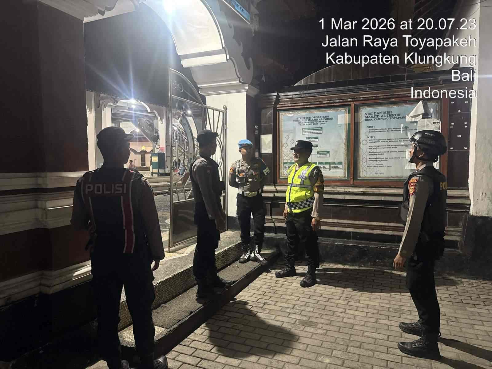 BALI – DETEKSIPOST.COM – Polres Klungkung – Dalam rangka memberikan rasa aman dan nyaman kepada umat Muslim yang menjalankan ibadah di bulan suci Ramadhan, Polsek Nusa Penida melaksanakan pengamanan Sholat Tarawih di Masjid Al-Imron, Kampung Toya Pakeh, Nusa Penida, Klungkung, (1/3).