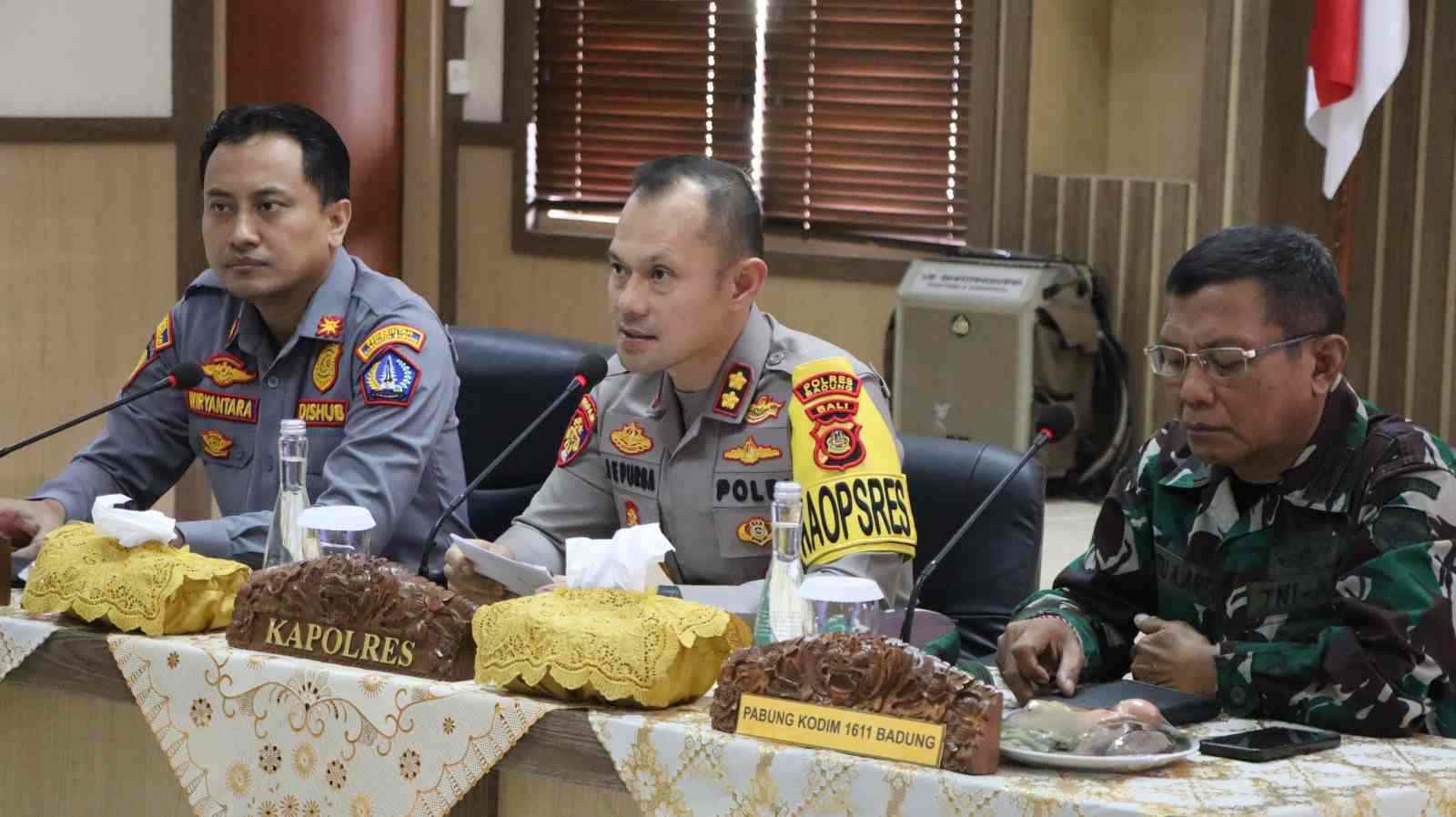 Sementara itu, Kabag Ops Polres Badung dalam paparannya menjelaskan sejumlah potensi kerawanan yang perlu diantisipasi menjelang Hari Raya Nyepi, khususnya saat malam pengerupukan atau pengarakan ogoh-ogoh yang berpotensi menimbulkan kemacetan, gesekan antarwarga, maupun gangguan kamtibmas akibat konsumsi minuman beralkohol. Selain itu, pada momentum Idulfitri diperkirakan terjadi peningkatan arus mudik dan arus balik, kepadatan lalu lintas di jalur nasional maupun jalur wisata, serta potensi gangguan keamanan di objek wisata dan tempat hiburan.