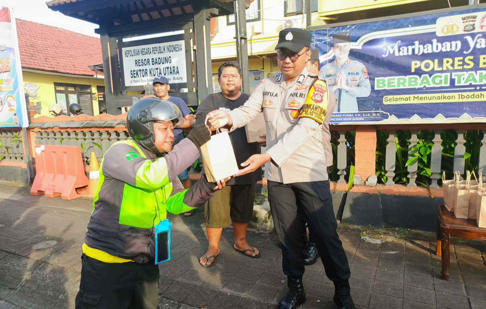 BALI – DETEKSIPOST.COM – Kuta Utara. Dalam rangka menyambut bulan suci Ramadhan, Polsek Kuta Utara mengadakan kegiatan berbagi takjil kepada pengendara motor yang melintas di depan kantor jalan raya Batu Bolong, Desa Canggu, Kecamatan Kuta Utara, Badung, Bali. Kegiatan ini bertujuan untuk memberikan sedikit kebahagiaan dan keberkahan kepada masyarakat yang sedang dalam perjalanan pulang ke rumah untuk berbuka puasa. Sabtu (7/3/2026) sekitar pukul 17.00 Wita
