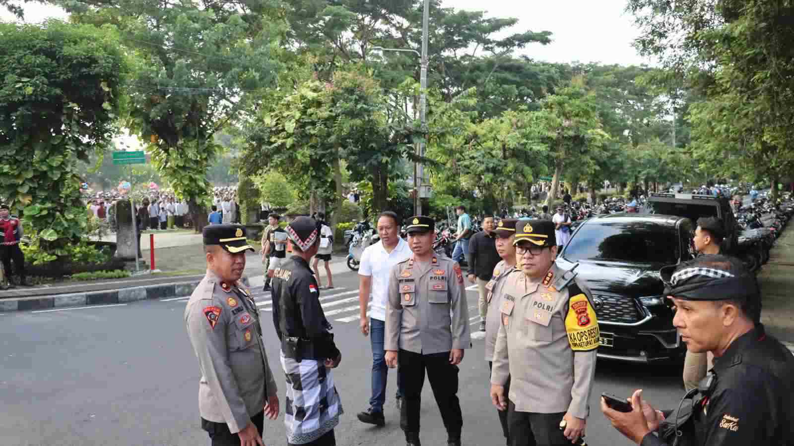 Dalam kegiatan tersebut, Kapolresta didampingi sejumlah pejabat utama dan personel di lapangan guna memastikan seluruh rangkaian pengamanan berjalan optimal. Kehadiran pimpinan di tengah-tengah masyarakat ini sekaligus untuk memberikan motivasi kepada personel yang bertugas agar tetap siaga dan profesional dalam menjalankan tugas pengamanan.