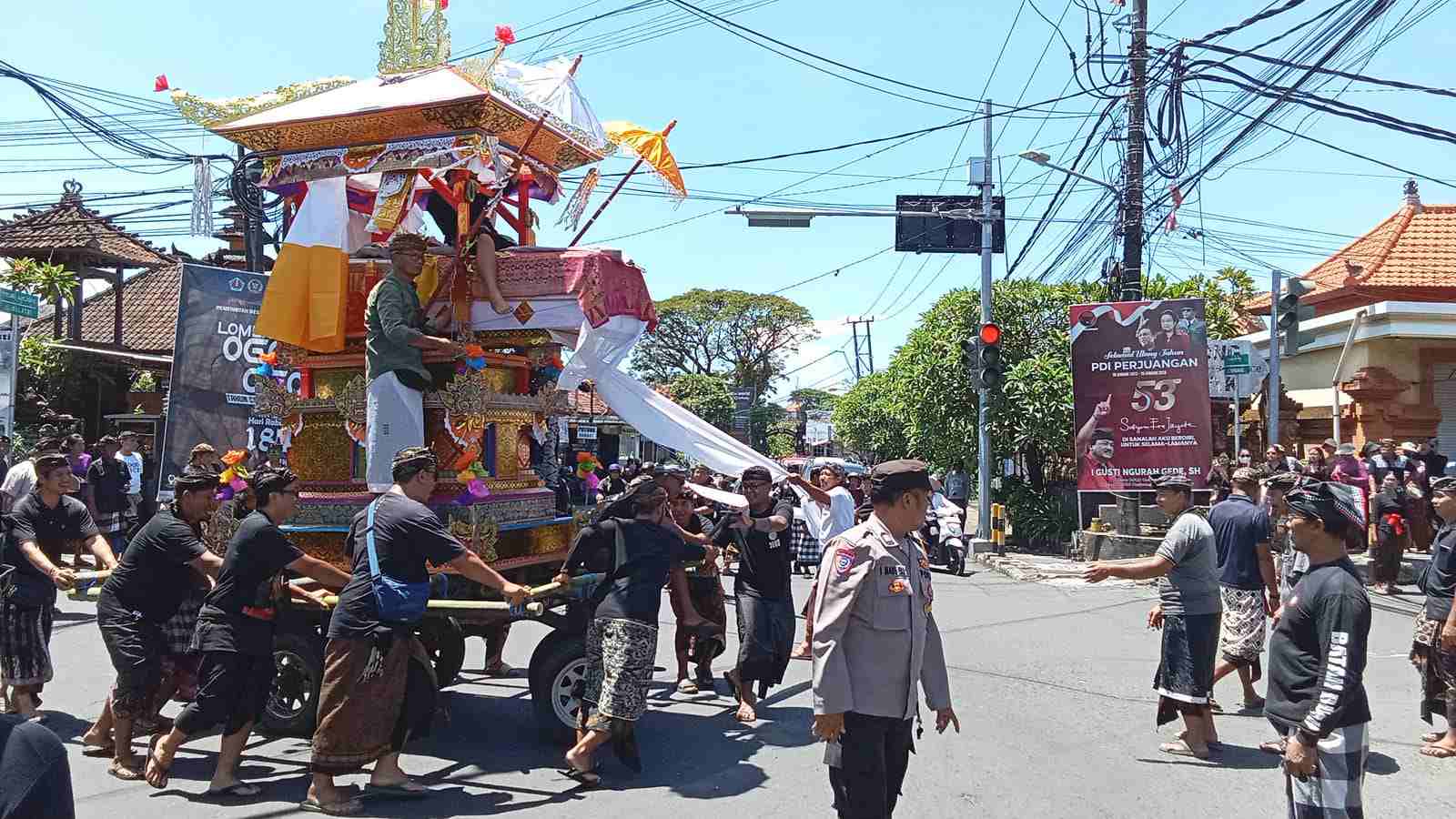 Sekitar pukul 12.20 Wita, jenazah diberangkatkan dari rumah duka dengan diusung menggunakan bade, diiringi oleh keluarga serta warga setempat dengan penuh khidmat. Sepanjang perjalanan hingga tiba di Setra Adat Kesiman, pengamanan dilakukan secara terpadu oleh aparat bersama pecalang dan unsur terkait lainnya.