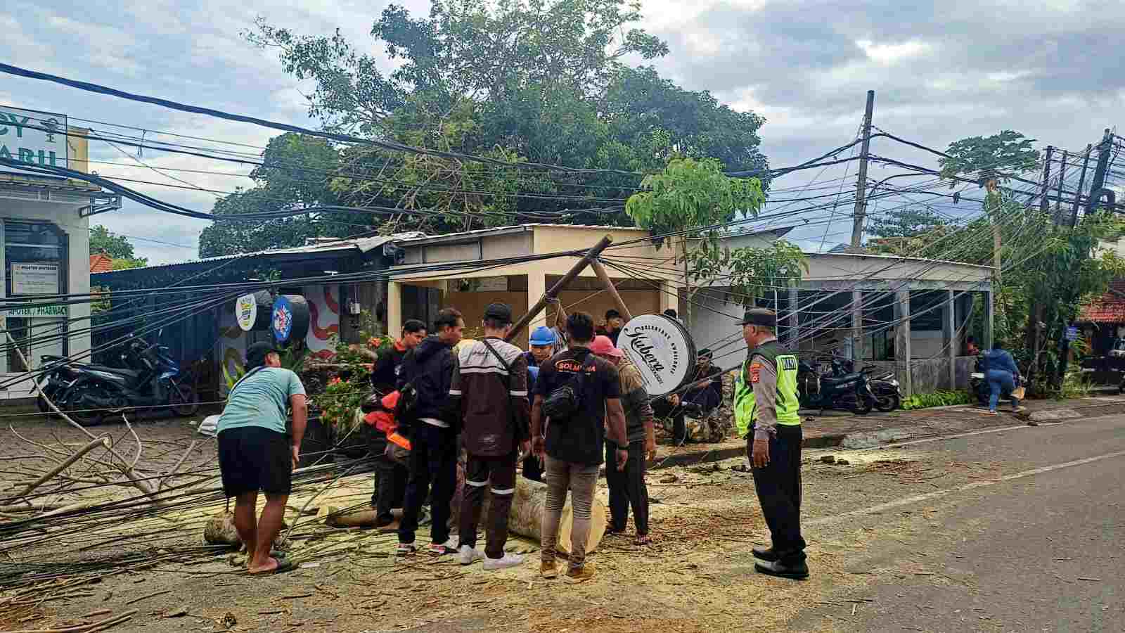 ANGIN KENCANG PICU POHON TUMBANG DI PECATU, TIMPA TIANG LISTRIK DAN SEPEDA MOTOR