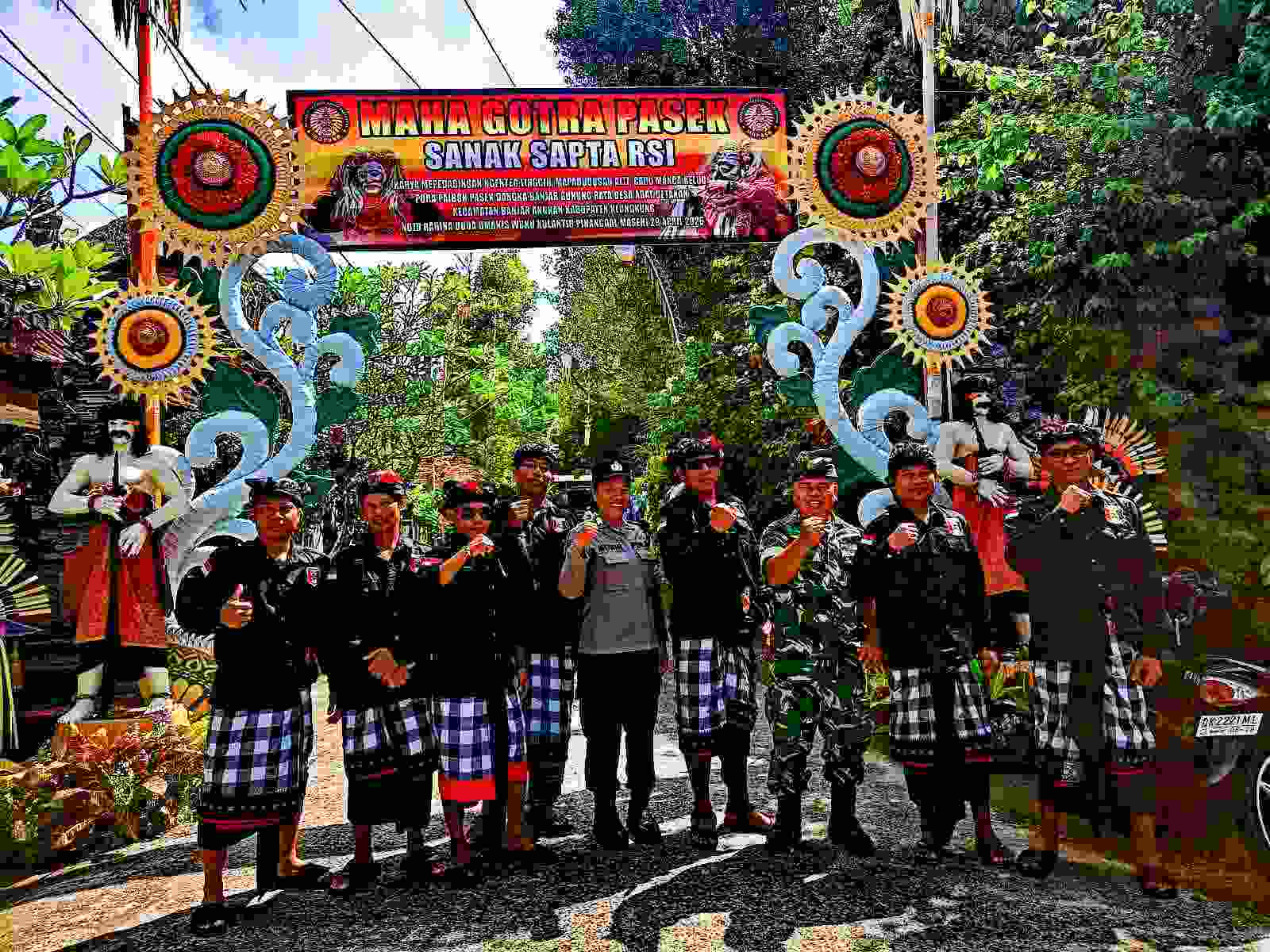 Kegiatan pengamanan ini dilaksanakan bersinergi dengan Babinsa serta pecalang adat setempat guna memastikan seluruh rangkaian upacara keagamaan berjalan dengan aman, tertib, dan lancar.
