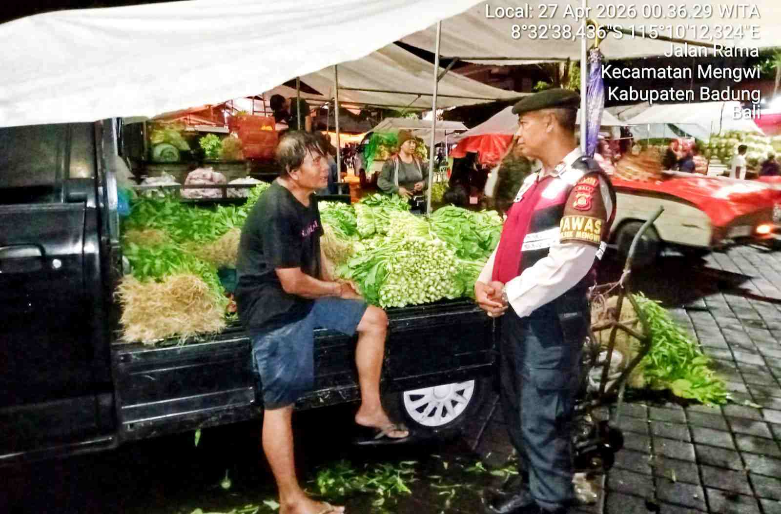 BALI – DETEKSIPOST.COM – Mengwi – Meningkatnya aktivitas masyarakat di kawasan Pasar Mengwi mendapat perhatian dari jajaran Samapta Polsek Mengwi. Untuk memastikan situasi tetap aman dan kondusif, personel Samapta melaksanakan patroli dialogis di area pasar, ketika masyarakat mulai memadati pasar untuk melakukan aktivitas jual beli dipasar tradisional yang terletak didesa Mengwi, Kecamatan Mengwi, Kabupaten Badung. Senin dini hari (27/4/2026).