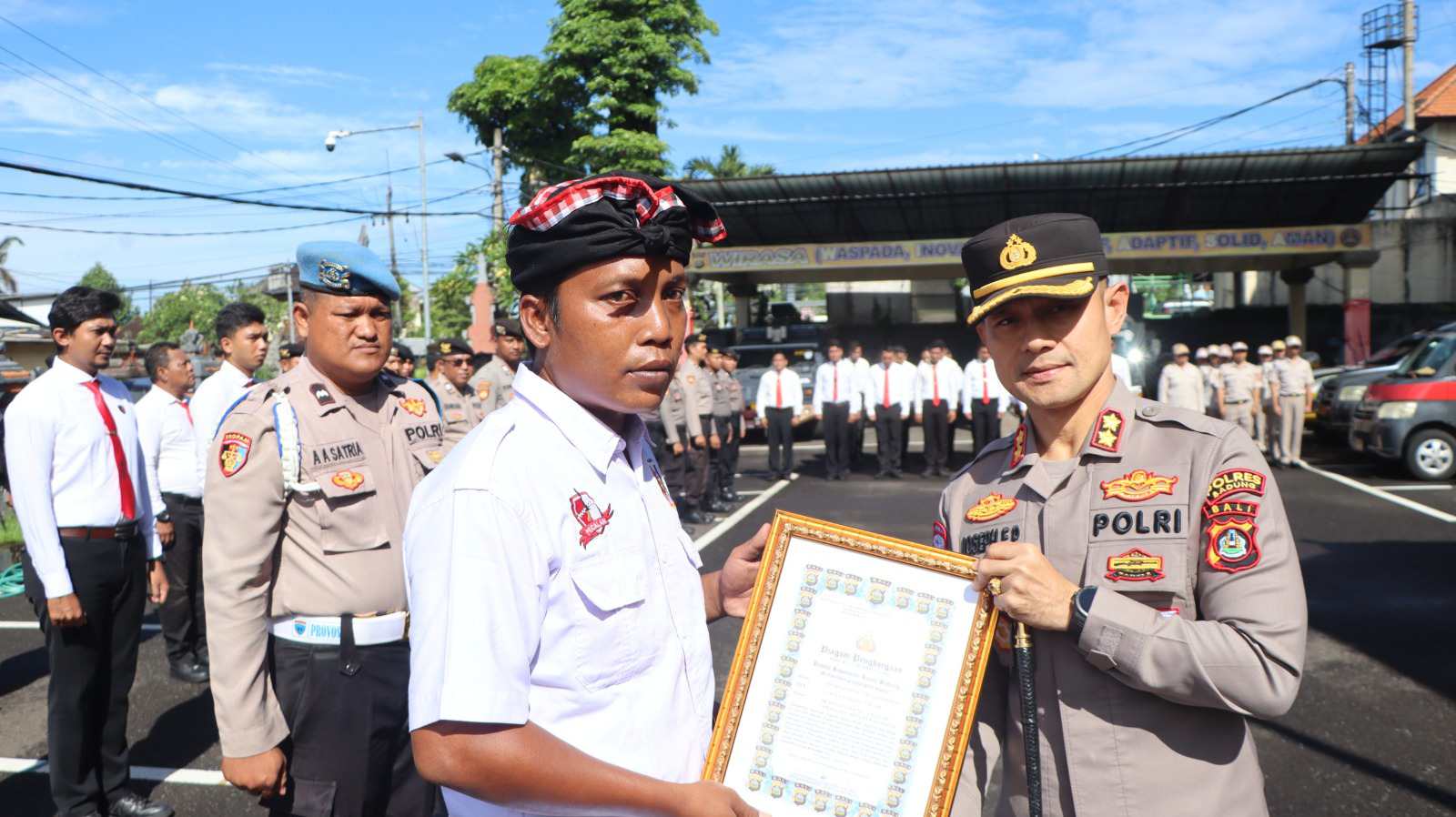 Sementara itu, kedua warga penerima penghargaan dinilai telah menunjukkan keberanian dan kepedulian luar biasa. Atas semangat, dedikasi, dan prestasi, keduanya berperan aktif membantu Polri dalam menjaga keamanan dan ketertiban di wilayah hukum Polsek Mengwi, khususnya di wilayah Desa Cemagi, dengan berhasil menggagalkan terjadinya peristiwa tindak pidana pencurian.