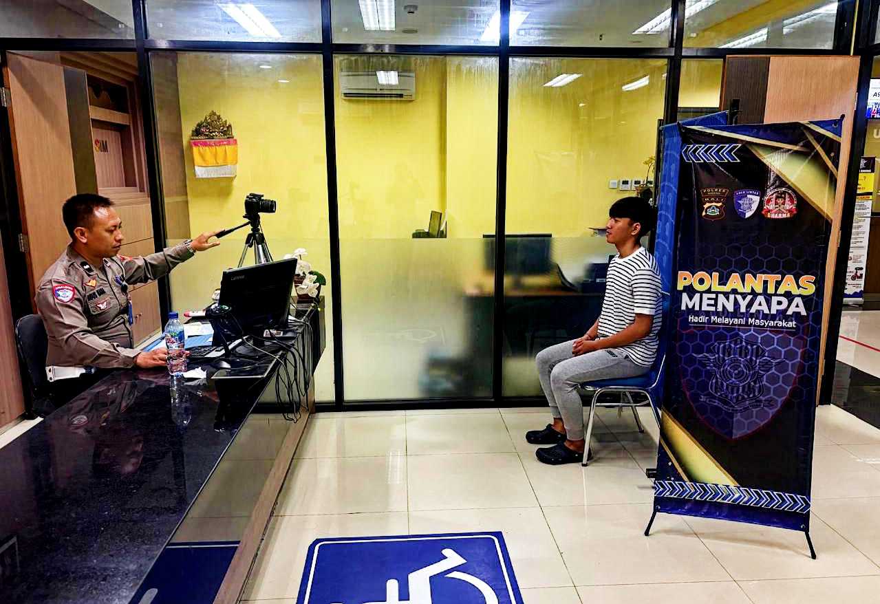 BALI – DETEKSIPOST.COM- Mangupura – Satlantas Polres Badung terus berupaya meningkatkan kualitas pelayanan publik melalui program Polantas Menyapa yang dilaksanakan di Unit Pelayanan SIM Polres Badung. Program ini menghadirkan anggota Polantas secara langsung untuk mendampingi dan menyapa masyarakat yang sedang mengurus SIM, sekaligus memberikan informasi dan edukasi seputar prosedur pelayanan serta tertib berlalu lintas. Selasa (28/4/26)